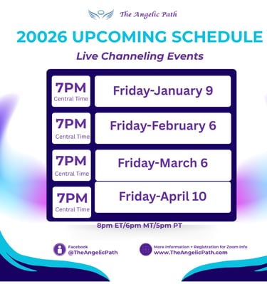 Each month, we hold a virtual Live Channeling Event so you have the opportunity to gain loving wisdom and insights from the Divine Guidance Team of archangels and ascended masters. They love questions! Ask yours and you might get a personal answer!! The event is free, with donations greatly appreciated. Check below to see how you can get a few gifts for donating and registering early to the event, held on Zoom!
